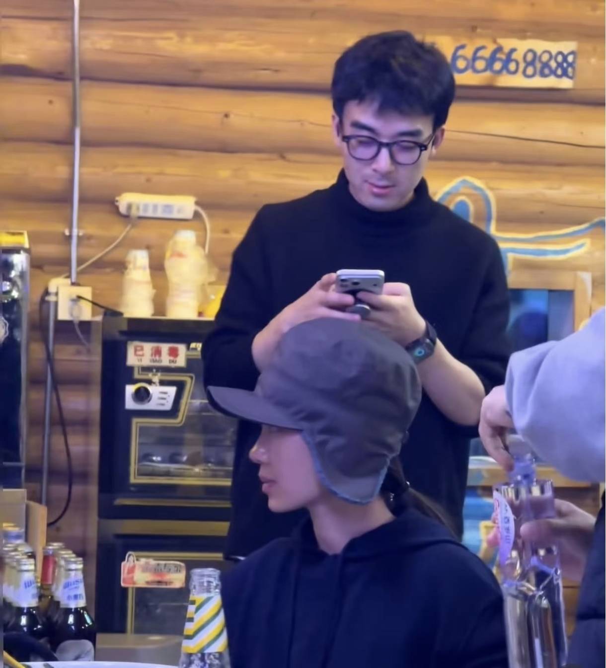 网友是在新疆禾木的一家饭店吃饭的时候遇到的,照片中这个带着像企鹅帽的女演员就是张小斐。张小斐看着也是素颜的样子,但皮肤还挺好的,穿着黑色的上衣。